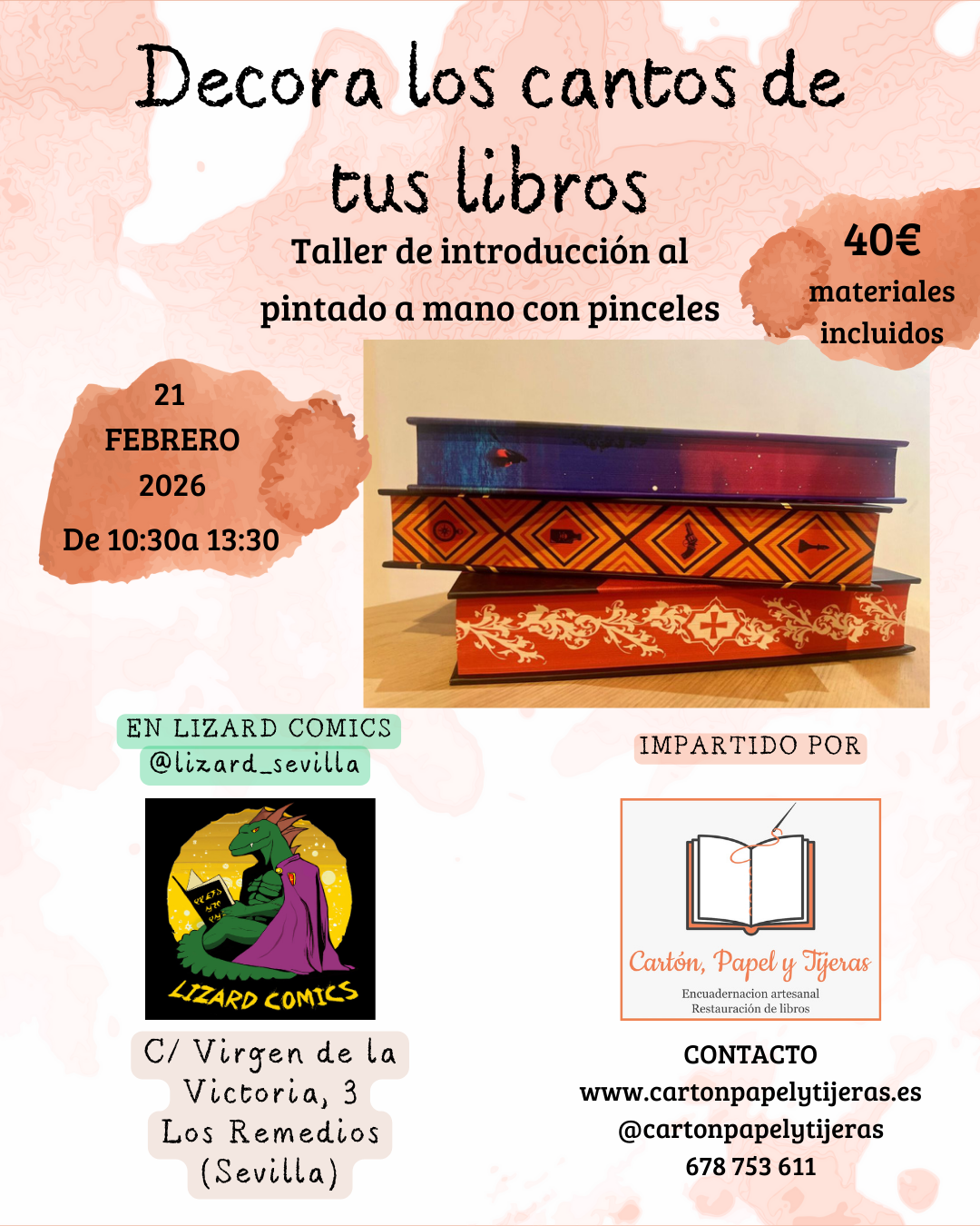 Taller de introducción al pintado a manos de cantos de libros con pinceles.